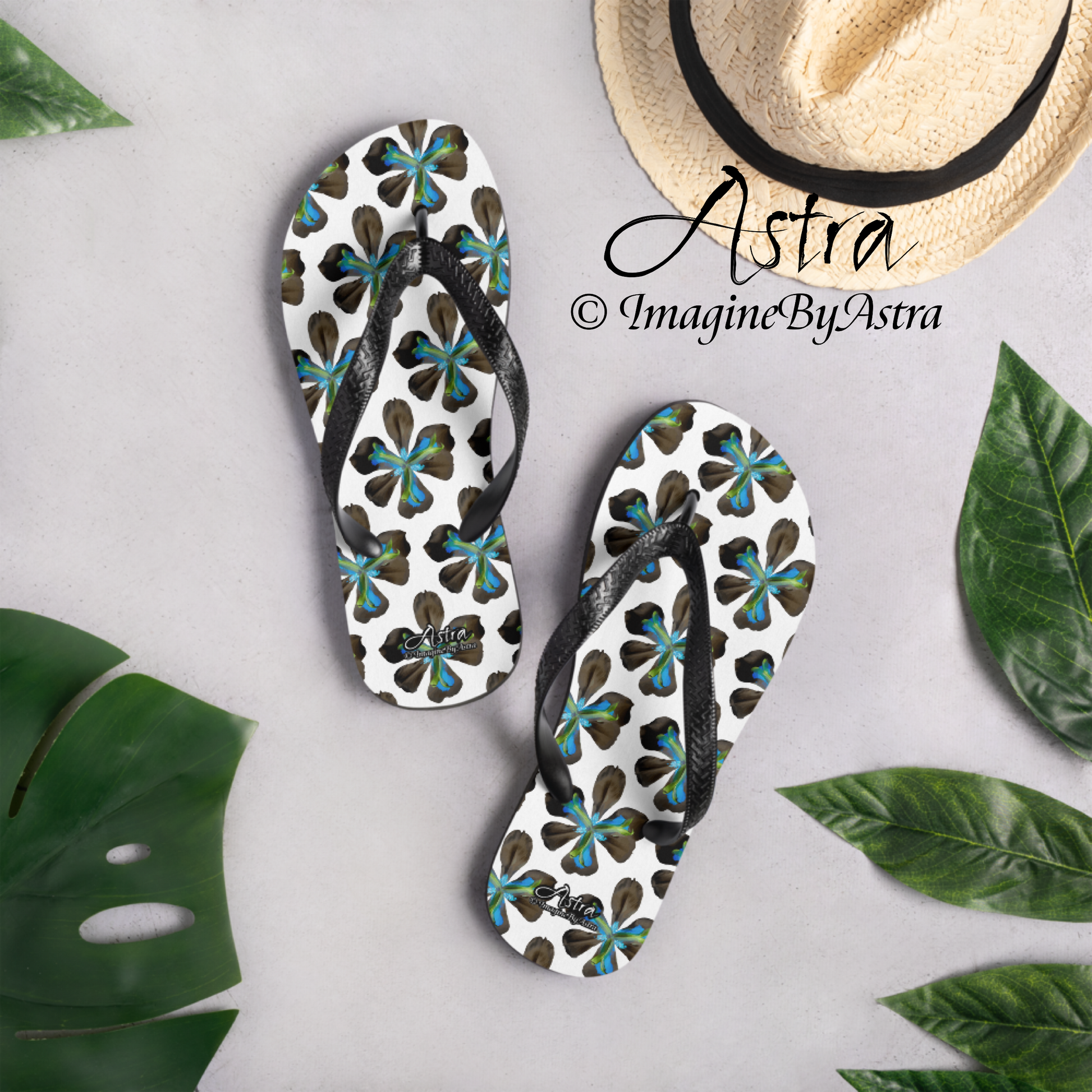 Consider completing the outfit with the matching dress, swimsuit, bag or beach towel from the Tropical Iris Resort Collection from ImagineByAstra.