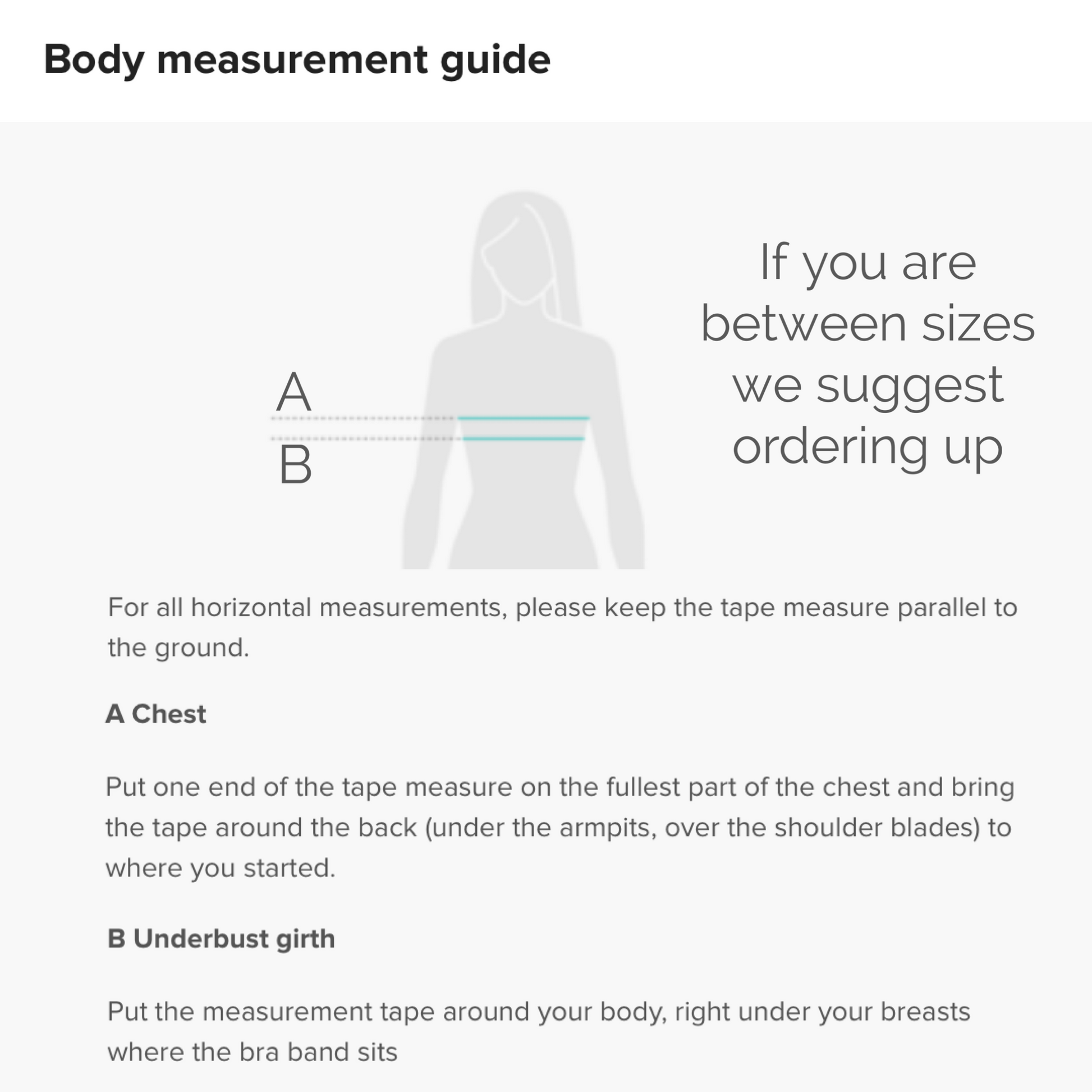 | CHEST (inches) | UNDERBUST (inches) | |