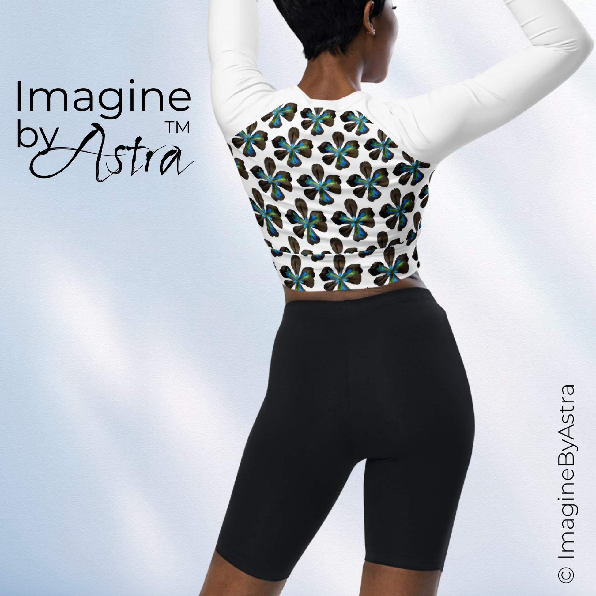 Tropical Iris Eco-Friendly Long Sleeve Crop Top - White Back