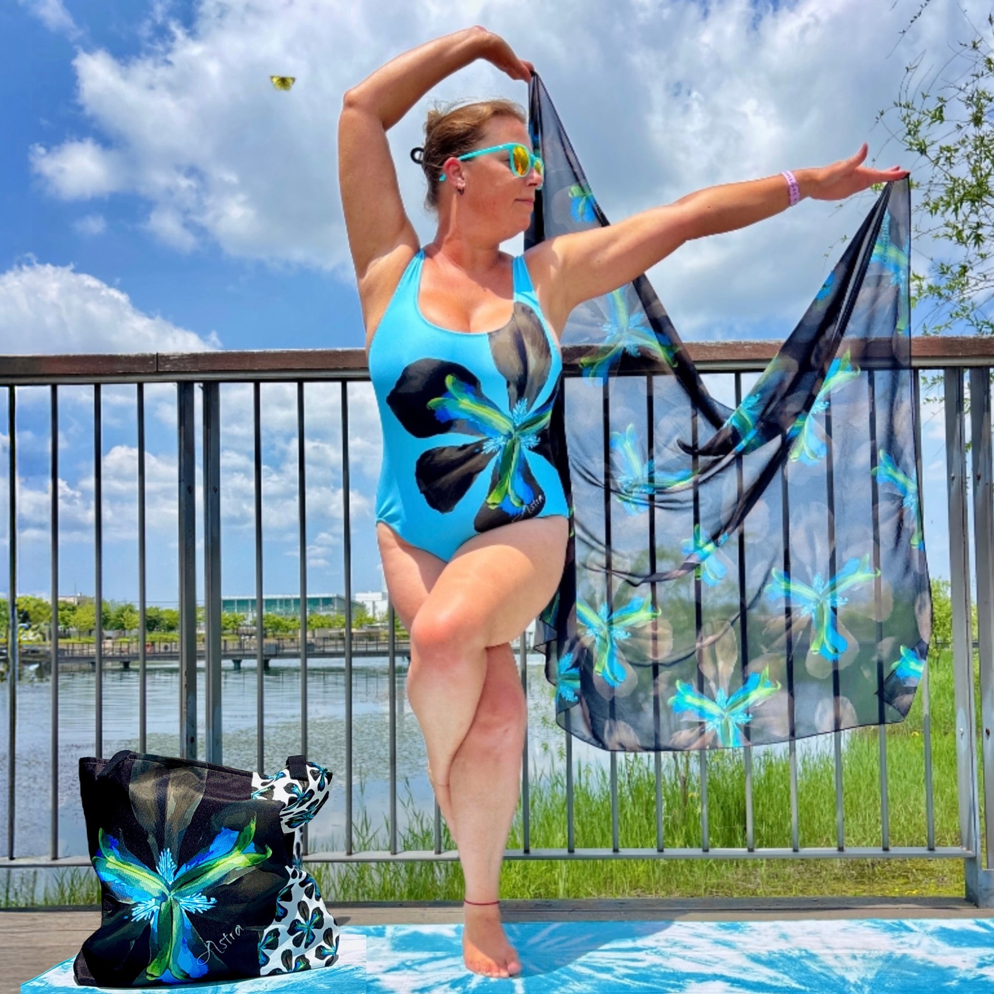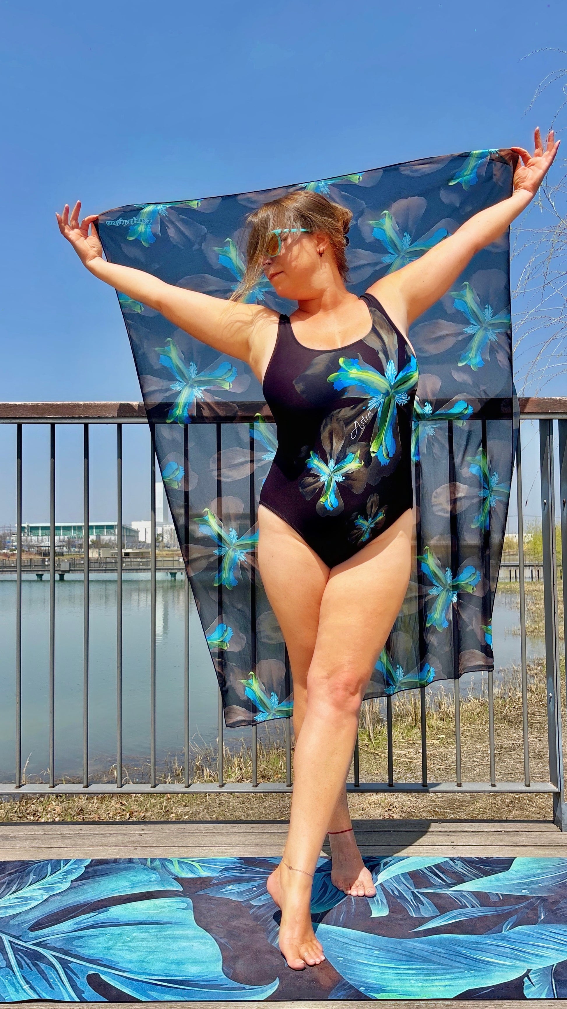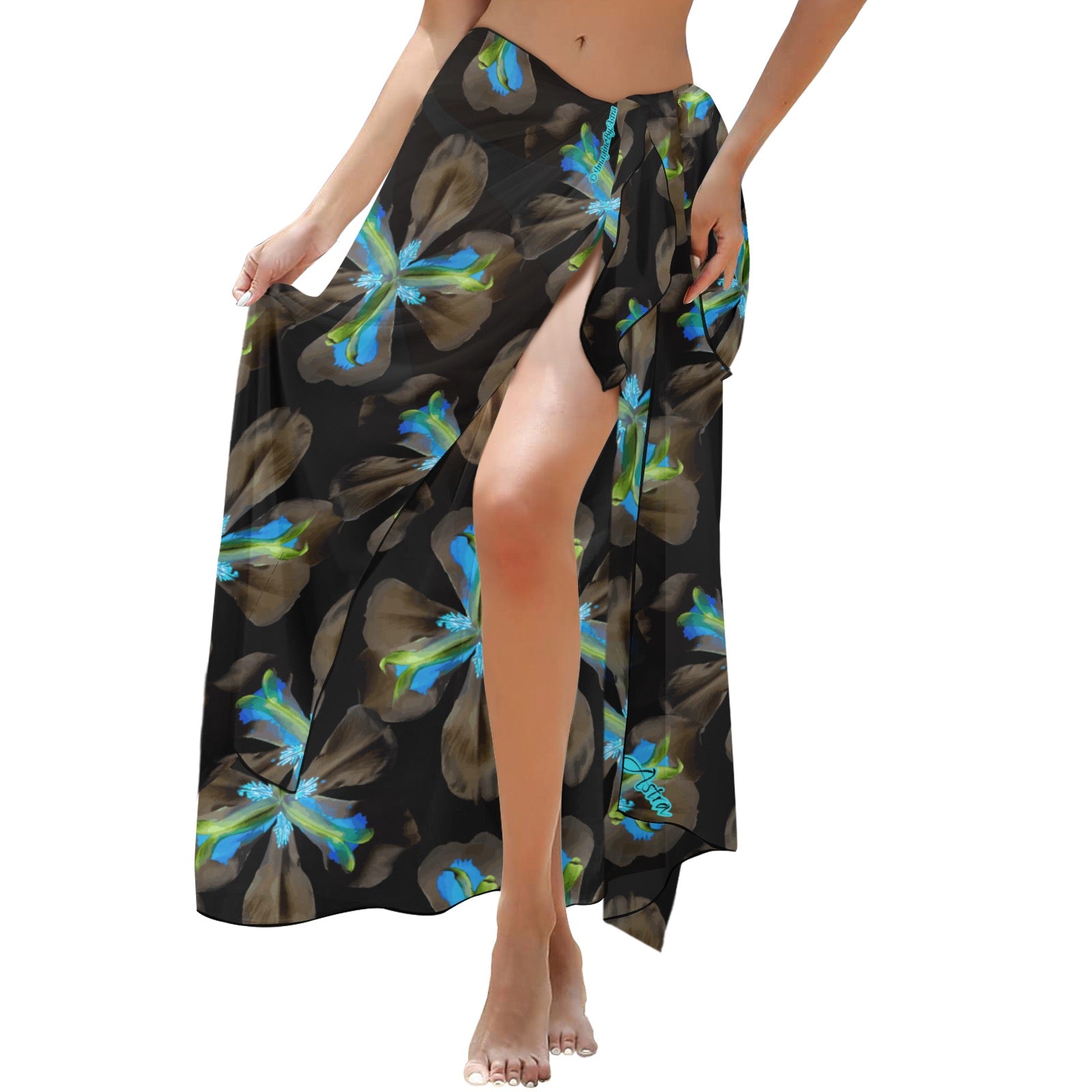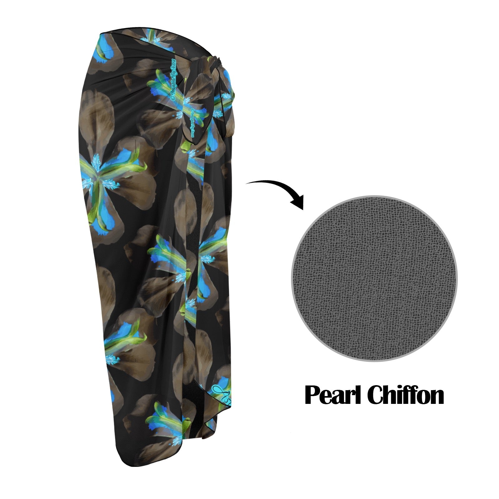 Strut your stuff and turn heads in this dazzling Tropical Iris Sarong and beach cover-up. This silky and sheer chiffon wrap can be worn long or short or as a headscarf.