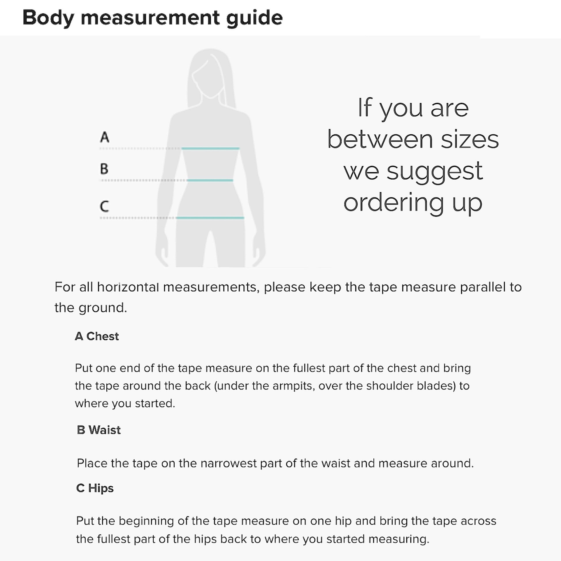 | CHEST (inches) | WAIST (inches) | HIPS (inches) | |