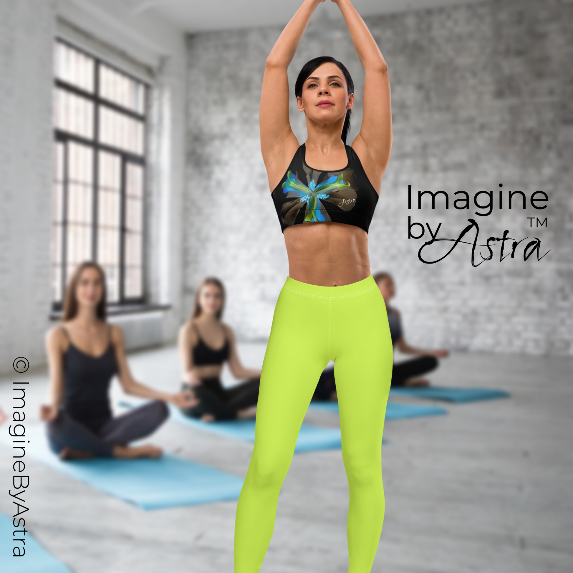 Show off this exotic tropical flower sports bra and leggings set at the gym or around town, from the Tropical Iris Collection from Imagine by Astra Activewear.