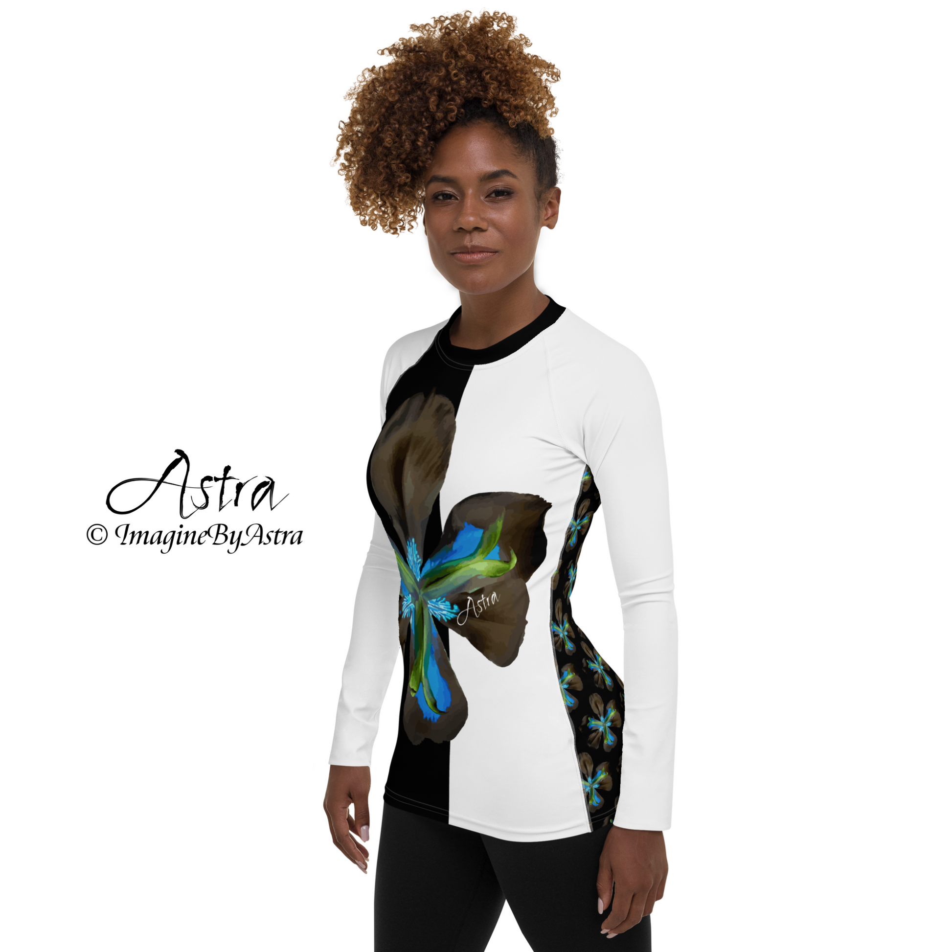 Consider pairing with matching leggings or a tote from the Tropical Iris Resort Collection from ImagineByAstra. Or wear as a rash guard with a swimsuit from the collection.