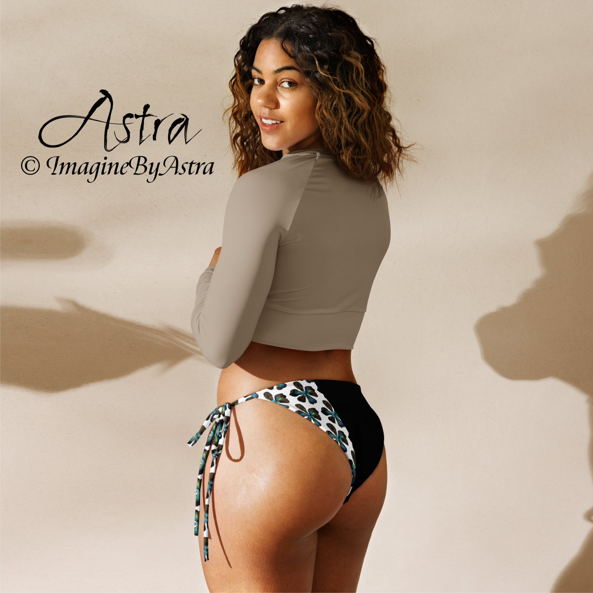Tropical Iris Eco-Friendly String Bikini Bottom - White Stripe