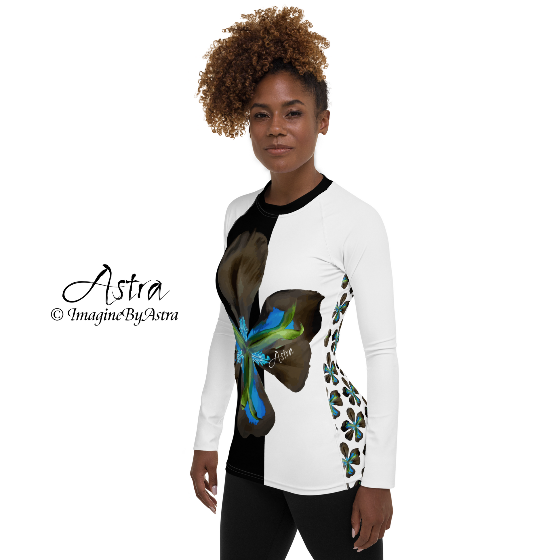Consider pairing with matching leggings or a tote from the Tropical Iris Resort Collection from Imagine by Astra. Or wear as a rash guard with a swimsuit from the collection.